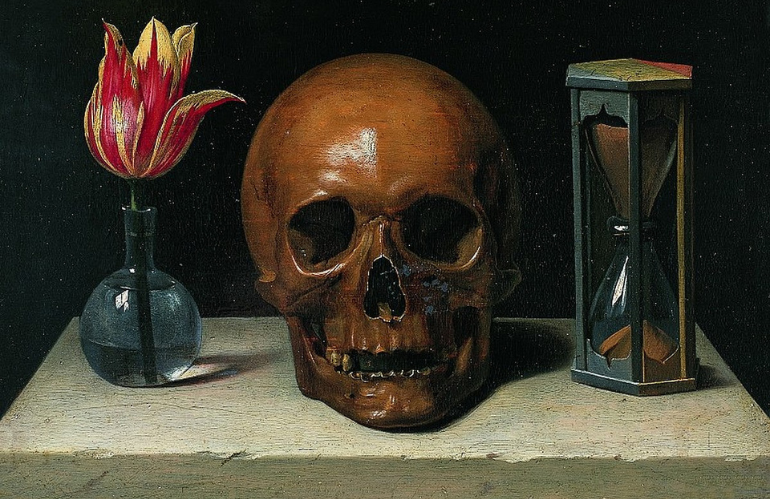In opere come quella di Philippe de Champaigne (Vanité ou Allégorie de la vie humaine), una tulipe recisa, un sablier e un crâne compongono un messaggio chiaro: la vita è breve, la bellezza fugge, il tempo non si ferma.