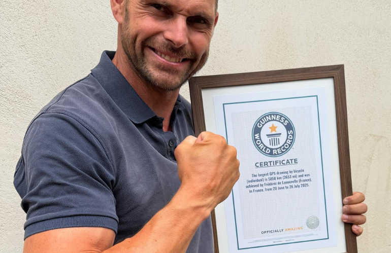 Il suo percorso è stato estremo: 150-180 km al giorno, 60.000 metri di dislivello. Lo ha definito «l’equivalente di un Parigi-Montréal salendo sette volte l’Everest». Ma il traguardo, raggiunto il 26 luglio, è stato più del superamento fisico: è entrato nella mappa del Guinness World Records come il più grande disegno GPS mai tracciato in bici, superando il primato americano.